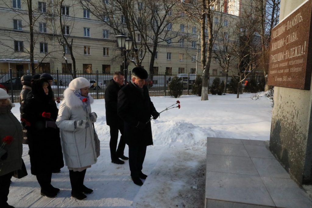 Участники митинга возложили цветы к стеле у главного корпуса вуза, на которой увековечена фраза: «Ушедшим – память, живущим – слава, грядущим – надежда». Участники торжественного мероприятия почтили память погибших защитников Родины минутой молчания.